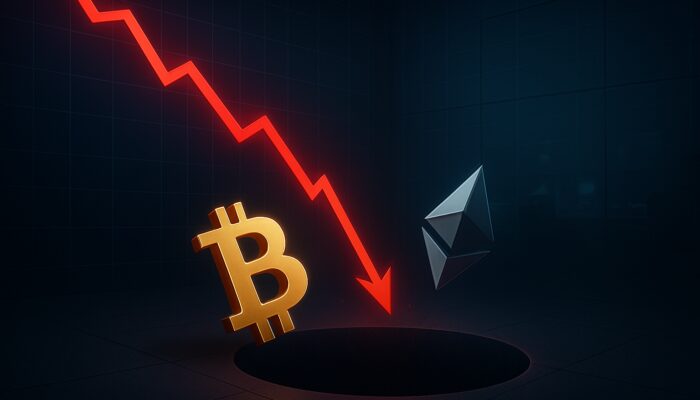 Crypto trader stares at volatile Bitcoin chart with 20% drawdown, red lines plunging.Contact Us